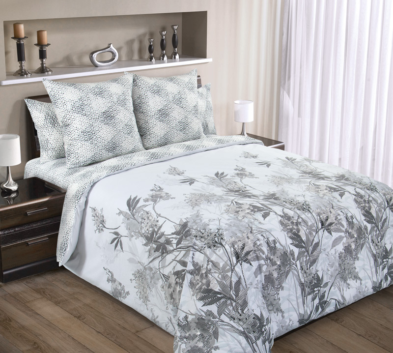 Этот постельный комплект в бело-серых тонах само олицетворение сдержанной гармонии. Цветочно-луговой принт пододеяльника выполнен в стилистике черно-белых фотографий. Он словно пронизан потоками воздуха: белый, почти прозрачный фон делает его максимально дышащим. Ткань-компаньон украшена ромбовидным узором, который нанесен мелкими точками, что позволяет взгляду отдохнуть.